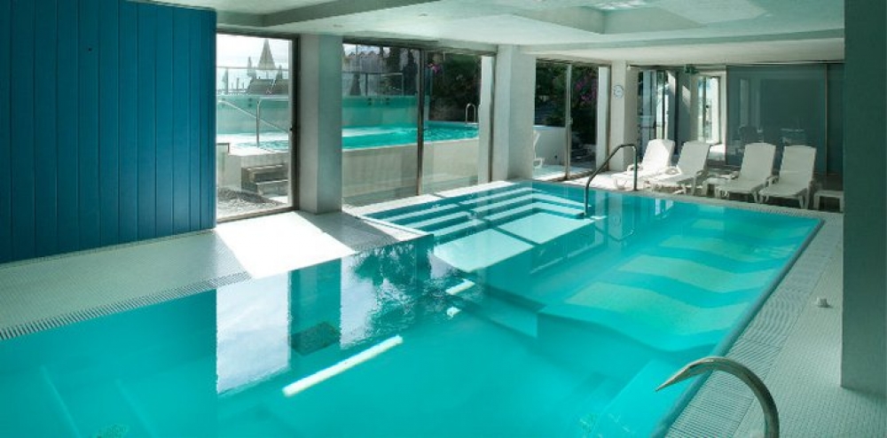 viso, massaggi, piscine di acqua di mare a 35°, interna ed esterna con idromassaggi.