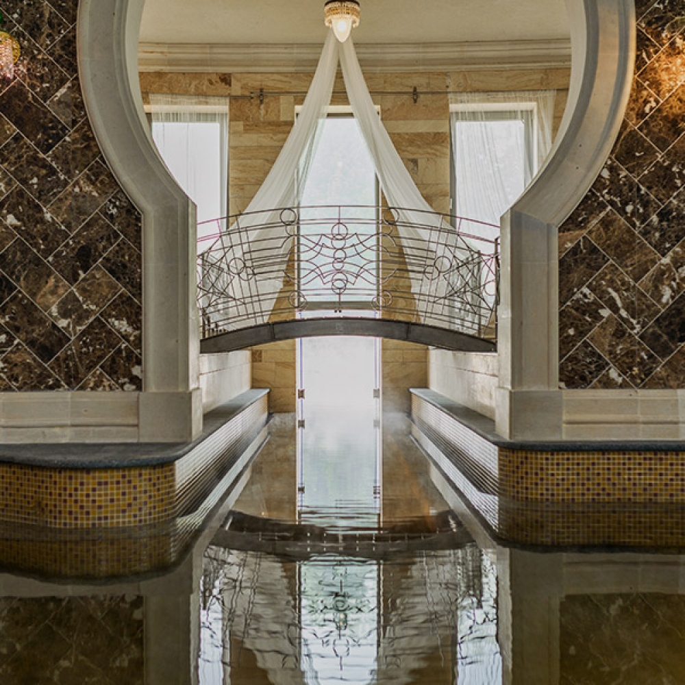 The nearly 10 000 m2 Oasis Spa of the hotel with its 22 POOLS contributes to the relaxation of our guests. The carefully designed interiors, canopy beds, comfortable relaxing areas and garden are the sources of tranquillity and harmony. Guests who are looking for a more active form of relaxing can use the 25 M SWIMMING POOL, while those who wish to recover and get revitalised can enjoy the various beneficial effects of THE THERMAL WATER from the hotel’s own fountain. The unique and original TURKISH HAMMAM and the silence and tranquillity of the SAUNA WORLD serve as the perfect way to cleanse and get revived.
